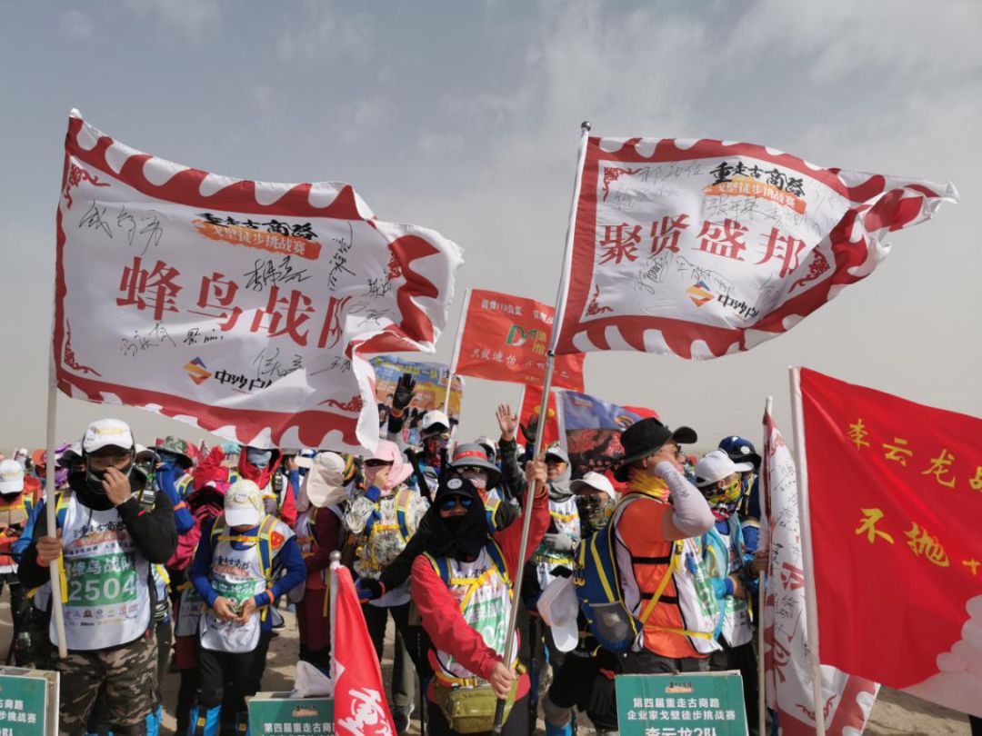 2019年5月21日,第四届重走古商路·企业家戈壁徒步挑战赛圆满落下帷幕。由聚贤盛邦董事长张开荣、七期80彭军珊、七期97张先伍、一期49刘珠国、三期56祁居任、四期55余大岷、六期72宋青鹏、六期60郭保栓、七期54李建昊、聚贤盛邦天朝上品项目部总经理王丽一行10人组成的聚贤盛邦战队,与来自香港、台湾、北京、新疆等24个省市自治区的27支团队,四大阵营共聚敦煌,赛事汇聚数百位社会各界优秀企业家、社会精英人士征战大漠戈壁,共启新征程。