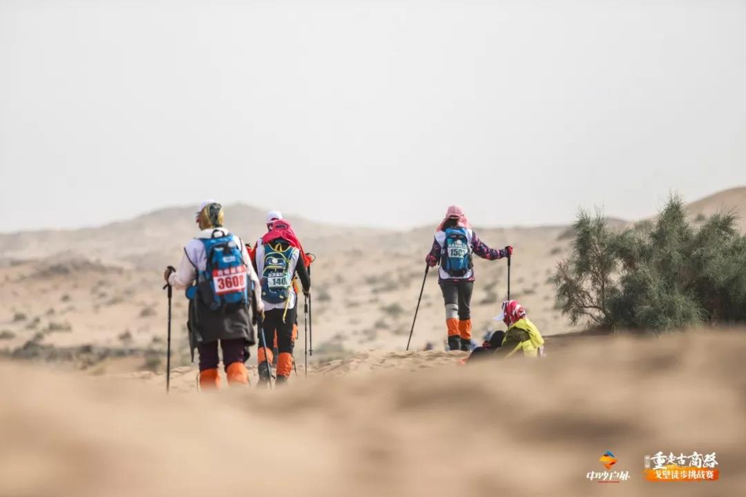 这一天,也是4天中最艰难时间最长的一天。除了有地形复杂的岩石戈壁,更有跌宕起伏的沙漠山丘,面对一望无际的黄沙,拖着疲惫的双脚,踩在松软的黄沙上,踏出一个一个深深的脚印,除了靠着登山杖支撑身体,更多的就是团队的力量,彼此手拉手,相互给予力量,在这一天,彼此没有抛弃,反而更多的加油鼓励,手牵手一起向前。